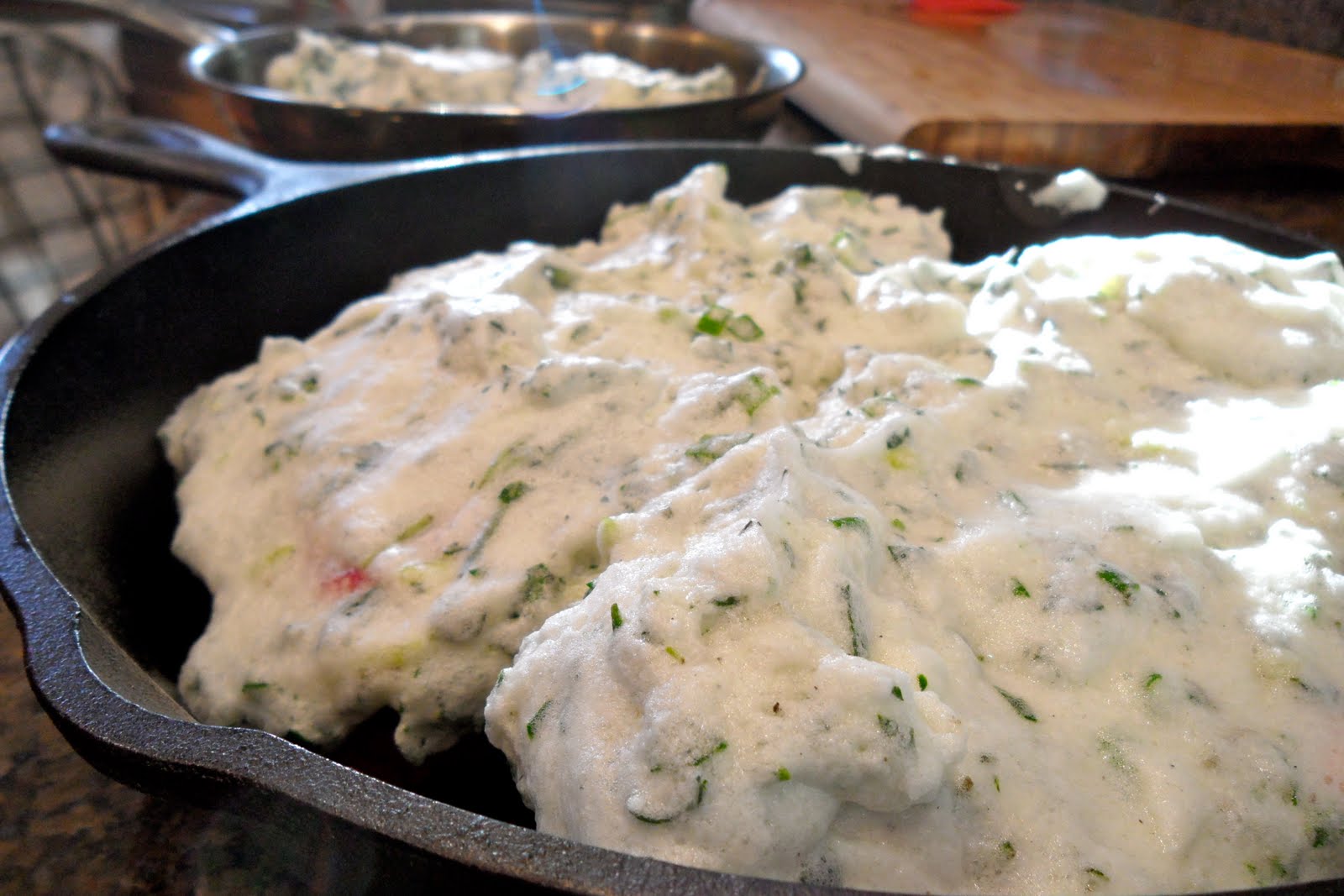 Take your egg white foam and spread this all over your steaks. Be sure to cover the top and the sides! Throw your steaks in a 450 degree oven for ABOUT 20 minutes. Also flip your potato pancake after it has come together on the bottom. Once you have flipped it over, throw it in the oven for about 15 minutes!